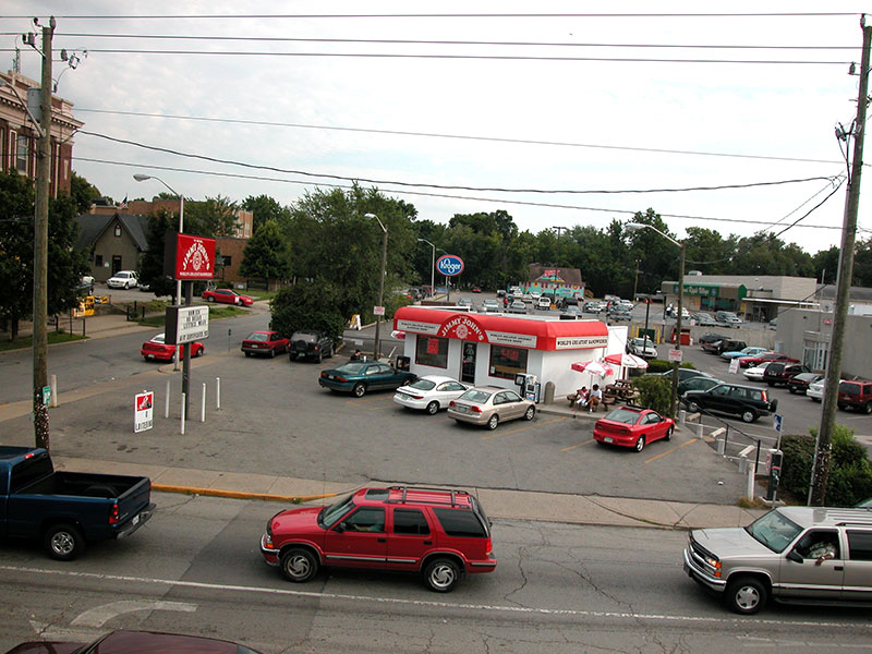 Broad Ripple Avenue looking east toward Guilford, Mustard Hall