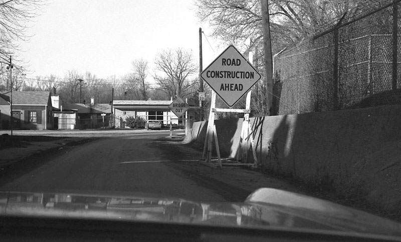 North on Westfield. Bridge Out sign.